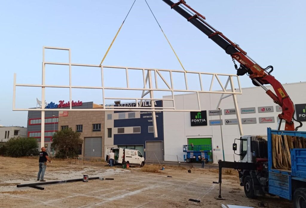 Descripción: Instalación de un impresionante cartel monumental, destacando nuestra capacidad para abordar proyectos de gran envergadura. La imagen captura a nuestro equipo utilizando una grúa para asegurar la colocación precisa del cartel, resaltando nuestro compromiso y profesionalismo en proyectos de gran escala.