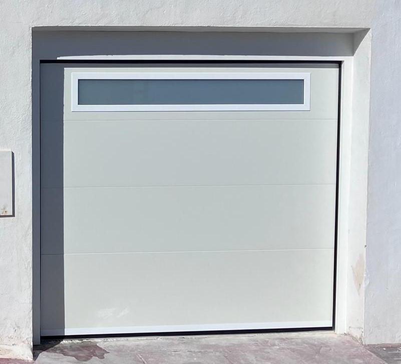Resultado: Una puerta seccional blanca que añade un toque contemporáneo y luminoso al espacio, combinando estilo y utilidad.