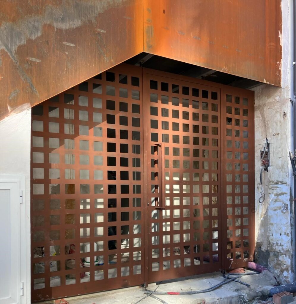 Descripción: Diseño e instalación de una reja de cuadros de acero corten, una opción que imita la apariencia del óxido para un toque industrial y moderno. Esta reja, ubicada en el acceso a una urbanización, no solo proporciona seguridad sino que también añade un elemento estético único. Además, se ha integrado de manera armoniosa una escalera justo encima del mismo material, creando una transición fluida y estéticamente atractiva.